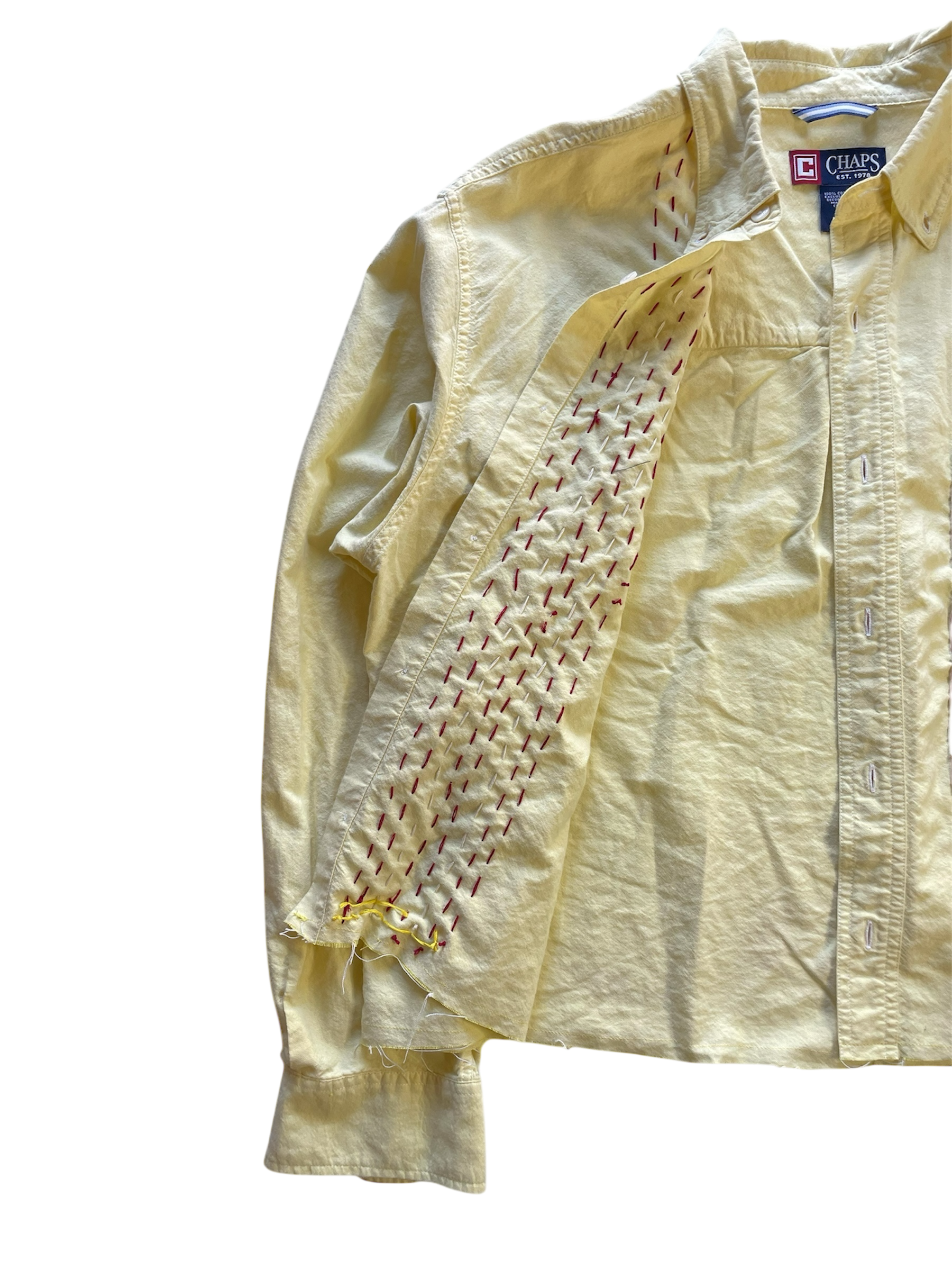 Only available in one size (Medium). This garment is a one-of-a-kind and will not be remade.